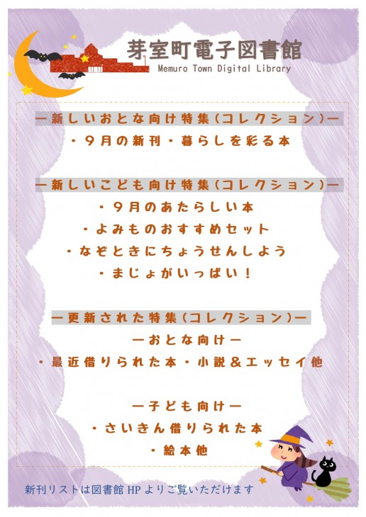 芽室町電子図書館 特集(コレクション)更新のお知らせ(9/20)