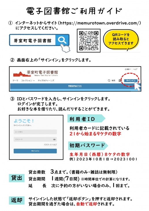 Memuro Library|OverDrive(外部リンク)からログインすることができます。